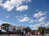 外でクラスごとにたこあげをしたり